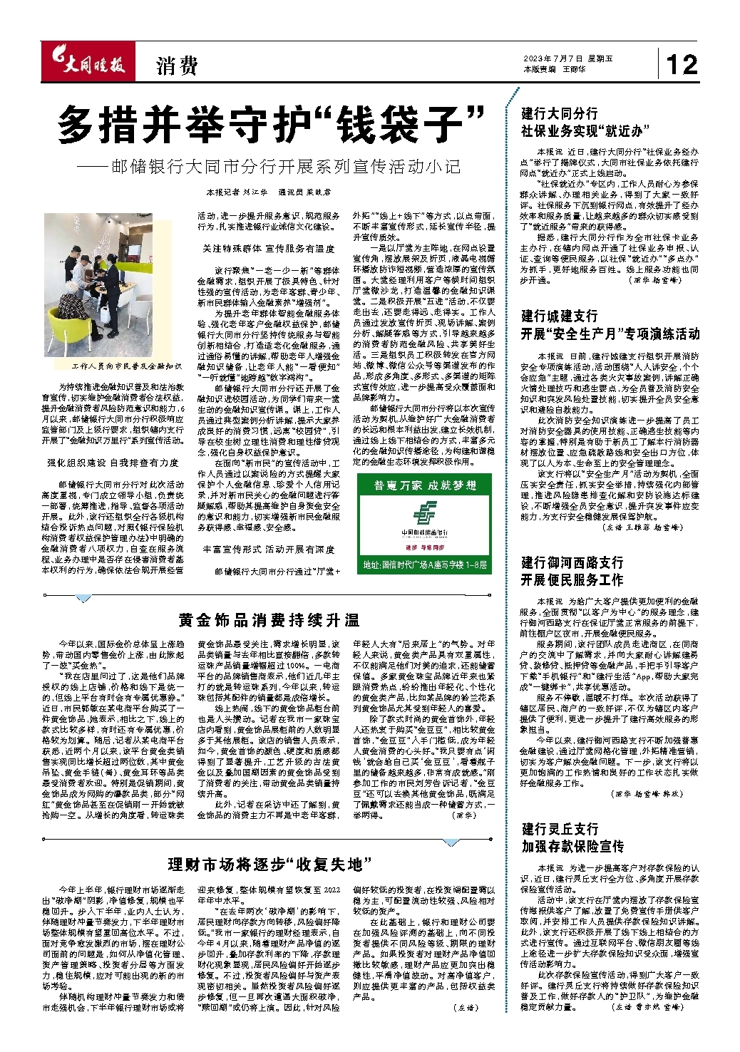 ~~~—邮储银行大同市分行开展系列宣传活动小记
