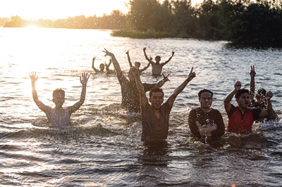 7月8日,在埃及盖卢比尤省,人们在尼罗河里戏水避暑。近日,埃及持续迎来高温天气。