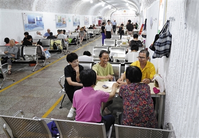当日正式入伏,不少市民来到杭州四牌楼防空洞避暑纳凉。四牌楼防空洞纳凉点内不仅配备桌椅、读本手册、防暑药、饮用水等,还通电、通手机信号、通免费无线网络,成为炎炎夏日里市民休闲好去处。