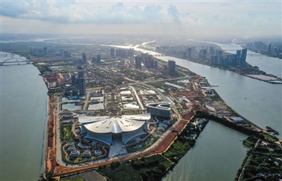 国际金融论坛(IFF)永久会址位于广州市南沙新区横沥岛尖,以“木棉花开,鸿翔海丝”为设计理念,目前项目主体建筑已经完成,正推进幕墙、机电和装修装饰等工作。