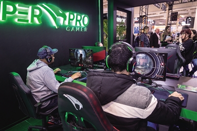 7月10日,在巴西圣保罗举行的国际消费类电子及家用电器产品展览会上,参观者体验电子游戏设备。