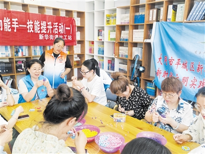 本报讯 (记者 杨翠叶) 为了丰富社区居民的业余生活,营造多姿多彩的社区文化氛围,近日,平城区新华街道新悦社区新时代文明实践站联合街道社工站开展珠串笔筒手工活动。