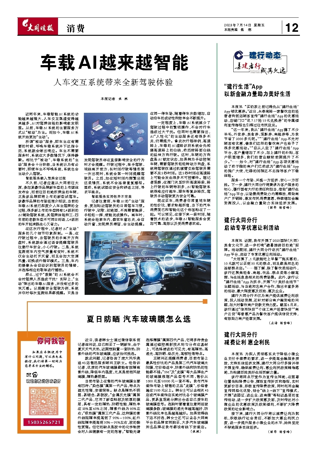 建行大同分行 启动专享优惠让利活动