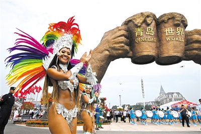 当日,第33届青岛国际啤酒节青岛西海岸新区金沙滩啤酒城举行开城仪式。据介绍,本届啤酒节持续至8月6日。来自五湖四海的游客可在此品鉴40多个国家和地区2000余款啤酒,并畅享音乐演出、艺术巡游、体育竞演等300余场活动。