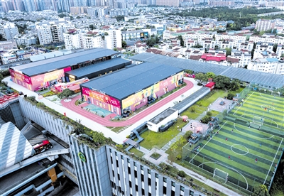 这是成都市金沙天空森林体育公园(7月20日摄)。金沙天空森林体育公园位于成都市金沙公交枢纽站停车场楼顶,占地12000平方米,有篮球馆、排球馆、综合训练馆、体适能训练区、足球场和健身步道等。