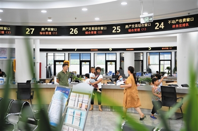 7月22日,市民在河北省滦州市政务服务中心内办理业务。