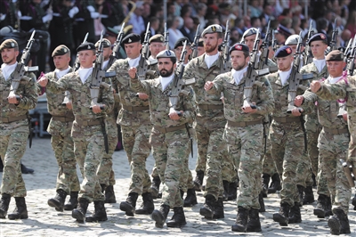 7月21日,军人在比利时布鲁塞尔参加国庆日阅兵式。
