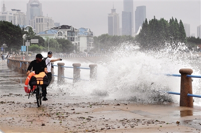 当日,受台风“杜苏芮”外围环流影响,山东省青岛市沿海掀起大浪。