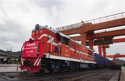 7月29日10时18分,随着X8020次中欧班列从义乌西站缓缓开出,前往西班牙马德里,今年中欧班列累计开行已达10000列,较去年提前22天破万列,发送货物108.3万标准箱,同比增长27%。