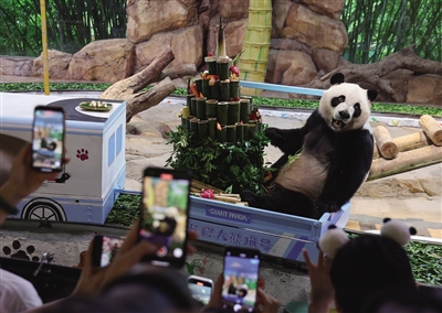 当日,全球唯一的三胞胎大熊猫“萌萌”“帅帅”“酷酷”迎来九周岁生日,三胞胎于2014年7月29日出生于广州长隆野生动物世界华南大熊猫繁育基地。