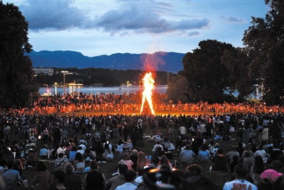 当日是瑞士的国庆节,瑞士举行点燃篝火、燃放烟花、音乐表演等活动庆祝国庆节。