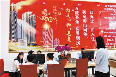 7月20日,在办理完购房手续后即拿到网签合同的王先生欣喜地表示,以前购买商品房,需等待企业按批次提交网签合同,多日后才可以领取到网签合同,现在不需要离开售楼部,交首付款后便可以现场办理网签合同,购房即网签,真是太方便了。