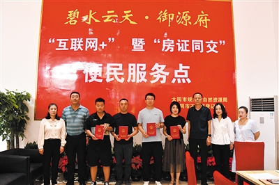 7月21日,大同市不动产登记中心在碧水云天·御源府设立的“互联网+” 暨“房证同交”服务点正式启动,碧水云天·御源府实现了“房证同交”, “钥匙、房本一起拿”,让购房者吃上了“定心丸”。