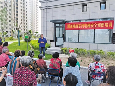 御龙尚府是政府保障性回迁安置小区,老年业主普遍对电梯认识度不高,电梯维保人员实地模拟“困人事故”,让老年业主更生动真实地体验被困电梯如何成功自救,提高了业主乘梯安全意识和自我保护能力。