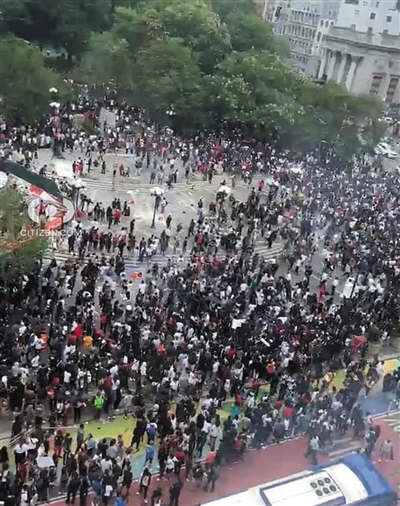 马德里说,一些人点燃易爆物,还有人挥舞建筑工地上的工具。多名警察和集会人员受伤,他自己也被物体击中。“一些人头上、脸上都在流血……人很多,场面失控……很多年轻人受伤了。”