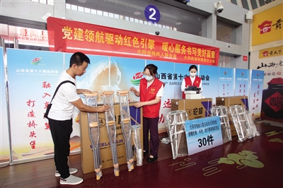 本报讯 (记者 龙中华) 山西省第十六届运动会开幕在即,7日,市残联向大同云冈机场捐赠轮椅、手杖、腋杖、助视器等30件便民服务辅助器具,为行动不便的人群提供便利服务。