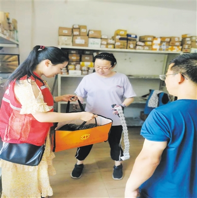◀ 近日,平城区光熙苑社区工作人员为辖区快递从业人员送去“暖心包裹”。 本报记者 杨翠叶