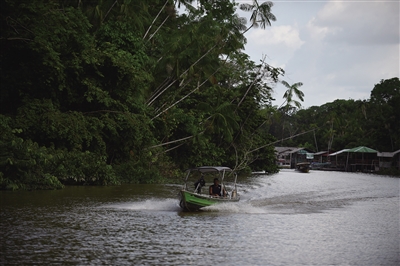8月8日,船只行驶在峰会主办地巴西贝伦市的昆布河上。