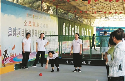 地掷球起源于5000年前的古埃及,我国引进并开展该项目后,经过多年的推广和发展,现已成为广大群众喜爱的一项体育运动。此次,地掷球作为群众赛事活动是首次出现在省运会赛场。