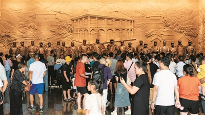 暑期,不少游客来到贵州遵义会议会址感受红色文化,接受爱国主义和革命传统教育。据介绍,自7月初以来,遵义会议会址日均接待游客超3万人次。图为8月13日,游客在遵义会议陈列馆参观游览。 新华社发