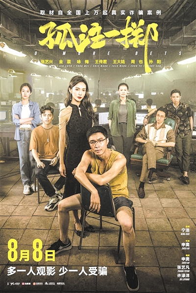 片方对于该片的宣传也非常到位,打出了“影片改编自上万起真实诈骗案例,境外网络诈骗全产业链骇人内幕将在大银幕上首度被揭秘”的口号,“多一人观影,少一人受骗”的宣传语也非常有警示和现实意义。不管从哪个角度看,这都是一部具有法制教育意义的优秀电影。但客观地说,《孤注一掷》在优秀程度上还是跟同样由“坏猴子影业”出品的《我不是药神》有不少差距,后者的网评分高达9.0分。