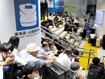 ▼ 8月16日,被滞留乘客在日本东京站等待新干线恢复运行。