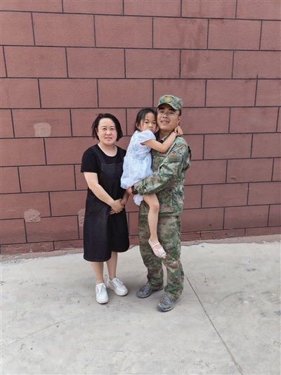 2022年秋天,公公突发急性脑梗,丈夫赴训练基地参加演习无法抽身,靳飞边工作边照顾公婆,每天下班第一时间回家做饭,5岁的女儿刚刚端上饭,她就急匆匆前往医院陪护老人,等再次回到家已是深夜,整整2个月没有睡过一个安稳觉。她说:“选择与军人在一起需要很大的勇气,在家里不仅要做好妻子和儿媳,还要把丈夫的那一份也扮演好。”丈夫是把军装穿在了身上,而她是把军装穿在了心里。