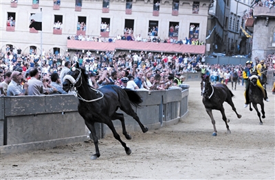 当日,锡耶纳赛马节在意大利托斯卡纳大区古城锡耶纳市中心的田野广场举行,吸引了众多观众前来观看。锡耶纳赛马节是世界闻名的意大利传统民间活动,始于1656年,每年7月2日和8月16日举行两次。