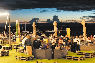 俄罗斯远东城市符拉迪沃斯托克三面环海,旅游业较发达,每当夜幕降临时,人们来到阿穆尔湾的海边娱乐休闲。