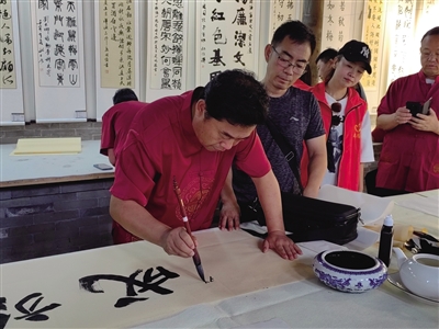 开幕式后,大家参观了浑源县第二届廉洁文化书画作品展。随后,兰亭雅集活动正式开始,众多书法家挥毫泼墨,笔走龙蛇,把对浑源的赞美和祝福付诸笔端,苍劲有力的笔法、倾情挥毫的风采,赢得现场观众连连称赞,营造了热烈的文化氛围。