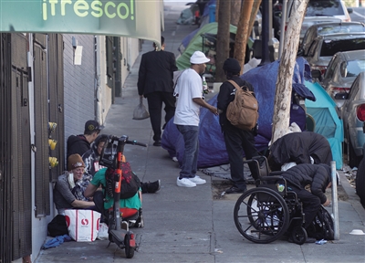 ▶ 这是8月18日在美国加州旧金山市区的街道上拍摄的无家可归者。