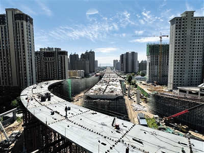 本报讯 (记者 辛雅君) 8月19日,同煤高架快速干线西段工程施工现场,工人正全力进行施工建设,一片火热景象。而在同煤高架快速干线西段工程的施工“核心”将建成四层三路T型互通式立交,进一步方便市民出行。