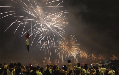 ◀ 8月20日,在匈牙利首都布达佩斯,人们观看烟花秀。