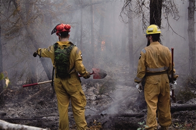 8月22日,加拿大军人在西北地区一处火场进行灭火作业。