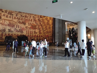 据了解,8月14日至20日,市博物馆总分馆共接待参观者12万余人次,环比增长3.1%。由于游客众多,市博不仅需要预约入场参观,还实施了“周一不闭馆”、将闭馆时间延长到18时等举措,尽最大努力满足各地游客的参观需求。
