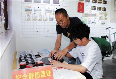 近日,记者来到大同古城东南邑历史文化街区,走进东南邑主题邮局,明信片展台、明信片书写区前的游客络绎不绝,不少游客在一张张充满大同文化特色的明信片上写祝福语、盖特色纪念戳。店主李东源是中国邮政大同分公司员工,同时也是这家小店文创产品的设计者,热爱传统文化的他将大同煤雕完美地“复刻”到纸上,以笔代“锥”,以纸代“石”,最终以“钢笔点画”的形式呈现出来。在大同邮政支持下,他依托画稿,以邮资明信片为载体,推出了“煤雕点画”明信片。他设计创作的作品《大同龙壁》《四大名楼》《手绘平城》《云冈石窟》明信片深受游客喜爱。