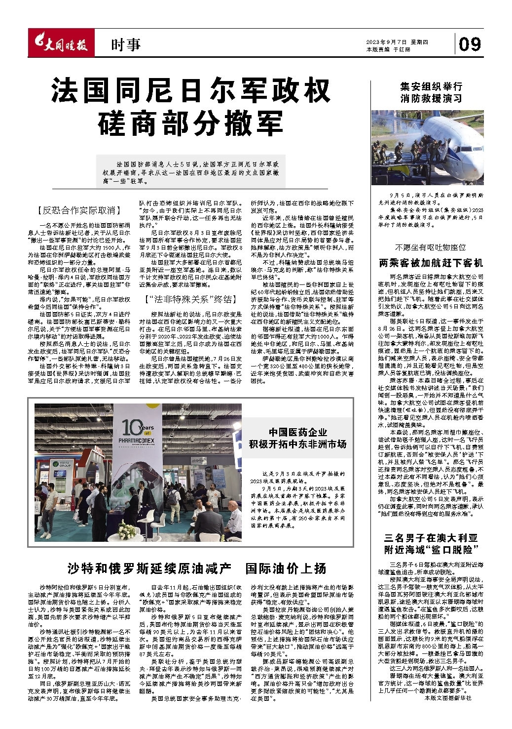 ~~~法国国防部消息人士5日说,法国军方正同尼日尔军政权展开磋商,寻求从这一法国在西非地区最后的支点国家撤离“一些”驻军。
