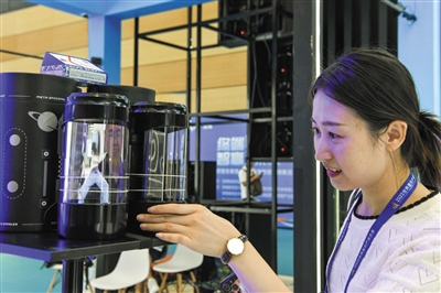 9月7日,在“2023世界显示产业大会新型显示创新成果展”现场,观众在查看全息舱产品。