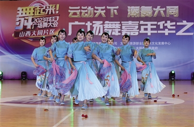 本报讯 (记者 崔莉英) 昨晚,“云动天下 潮舞大同”2023年全国广场舞大会山西大同片区展演广场舞嘉年华之夜在大同大学体育馆举行,来自晋蒙陕甘宁五省区16支广场舞代表队近2000名广场舞爱好者欢聚一堂,以饱满的精神状态和动感十足的舞蹈,为现场观众和全国网友带来地域特色浓郁的视听盛宴。