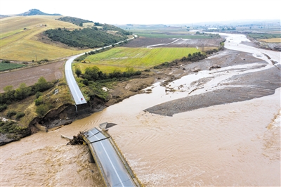 这是9月7日在希腊卡尔季察拍摄的洪水灾区。