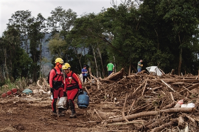 9月10日,消防员在巴西南里奥格兰德州科利纳斯市清理一处废墟。