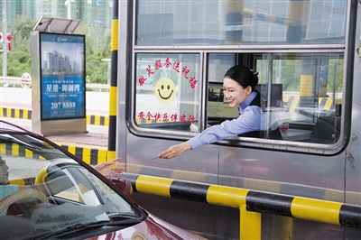 微风轻拂的早晨,大同南收费站宽敞的庭院里,白洁和班组的同事们正在列队做上班前的最后准备。整理仪容、检查票款箱、岗前讲评,一切都有条不紊地进行。走进收费亭,阳光暖暖地照在白洁身上,她捋捋头发,整整衣角,脸上露出微笑,仿佛为新的一天注入了青春能量。