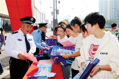 本报讯 (记者 郑苗苗) “暴恐音视频是以声音、图像或者声音与图像组合形式再现暴力恐怖与宗教极端、民族分裂等内容的录音带、录像带或者其他存储媒体,会诱发暴力恐怖犯罪,严重破坏社会稳定。大家一定要对暴恐音视频说不,不散布、不转发、不传看。”9月14日上午,在万达商业广场,市公安局反恐办的民警向过往的市民普及反恐防暴基本常识。