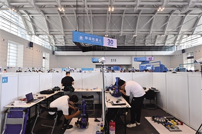 9月16日,选手参加移动机器人项目比赛。