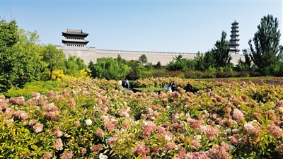 本报讯 (记者 辛雅君) 近日,我市城墙带状公园一大片绣球花吸引众多游客,赏花游玩,乐享美景。