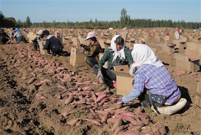 金秋时节,河北省卢龙县农民抢抓农时收获红薯,今年全县红薯种植面积达12万亩。近年来,当地政府根据辖区沙质土壤透水透气性好的特点,引导农民采取“合作社+农户”的模式,规模化发展红薯种植,并成立多家红薯产品深加工企业,逐步探索出富有特色的“甜蜜”致富路。