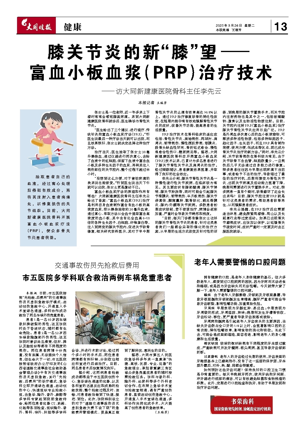 膝关节炎的新“膝”望——富血小板血浆(PRP)治疗技术