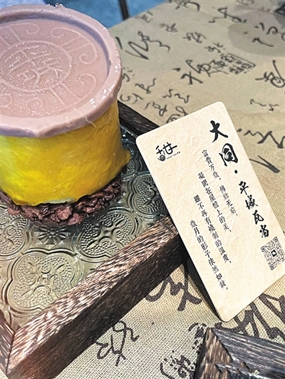 还有一家甜品店也很有特色,该店将云冈石窟、煤炭、古城墙及平城瓦当等一些大同元素与甜品完美地结合在一起,让人十分惊艳。而且,除了造型独特之外,店家还将沙棘、醋、黄花等有大同地方特色的食材作为甜品的夹心和辅料,别具一格。此外,每道甜品还配有一张小卡片,用简单的话语介绍大同的文化,从而可以让你进一步加深对这座城市的了解,建议外地来的朋友来此打卡。 (孟维鹏)