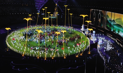 这是10月8日拍摄的闭幕式现场。 当日,杭州第19届亚洲运动会闭幕式在杭州奥体中心体育场举行。 经过15天的角逐,中国代表团获得201枚金牌、111枚银牌和71枚铜牌共383枚奖牌,取得亚运会参赛历史最好成绩。自1982年第九届亚运会以来,第11次蝉联亚运会金牌榜榜首。亚运赛场上,中国体育健儿3次打破世界纪录、18次打破亚洲纪录、74次打破亚运会纪录。 新华社发