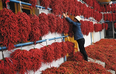 秋日线椒晾晒忙